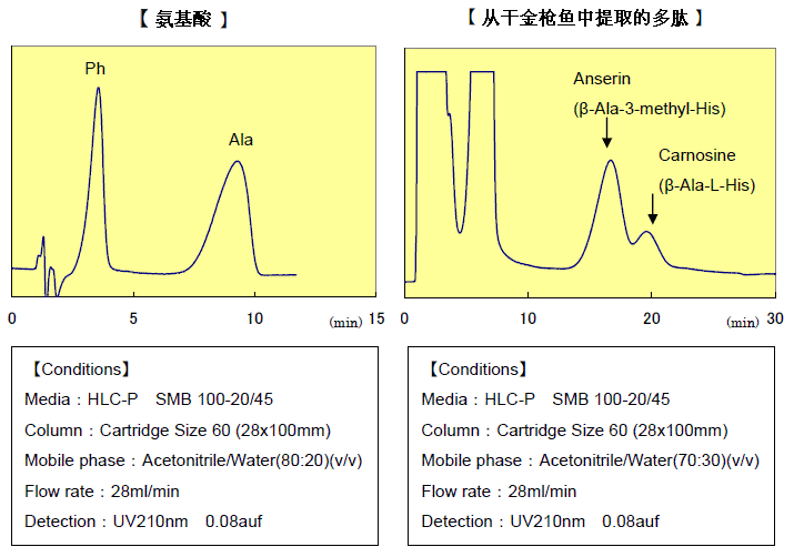????因此,對于極性化合物的洗脫,HILIC模式和反相模式是互補的。富士硅化學有限公司開發了兩款HILIC模式的填料,命名為“HLC”硅膠。兩種HLC硅膠都含有兩性的官能團,共價鍵合在硅膠表面。“HLC-A”用于分離純化有機酸、核酸和糖類;“HLC-P”用于分離氨基酸、多肽。