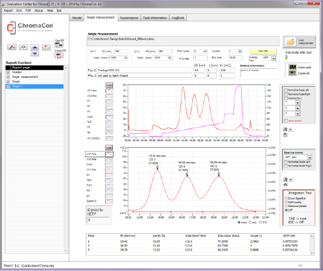 所有的Contichrom系統(tǒng)均具有完整的層析工藝運行能力,支持多種洗脫模式,ChromIQ軟件可以提供純化向?qū)Чδ埽灾С峙a(chǎn)工藝的設(shè)計和執(zhí)行。