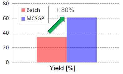 有案例證明,MCSGP可將產品純度從傳統工藝的59%提升至70%,將收率從傳統工藝的34%提升至61%,從而使產量(g /L /h)整體提升80%,并同時使Buffer的消耗量降低55%。MCSGP工藝,無疑可顯著地節約成本投入,并可產生更多的生產效益。