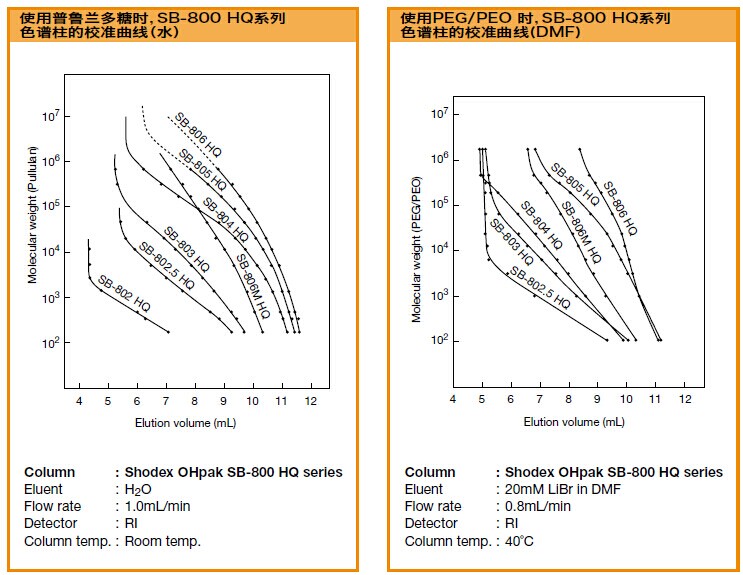 OHpak SB-800 HQ色譜柱的校準(zhǔn)曲線